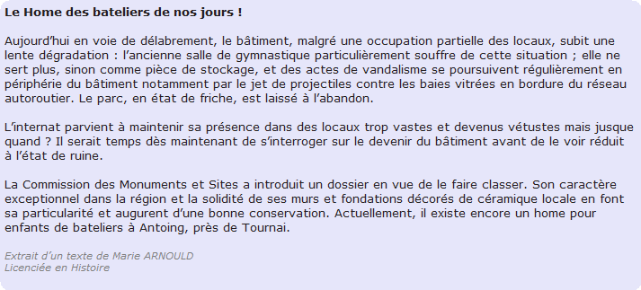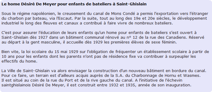 Saint-Ghislain : Home de l' Etat pour enfants de bateliers .